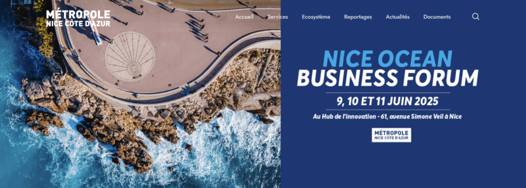 Sur la plateforme officielle de l’agence de développement économique de la Côte d’Azur (Team Côte d’Azur), on peut lire : « Dans le cadre de la Conférence des Nations Unies sur les océans et de l’Année internationale de la mer (UNOC3), la Métropole Nice Côte d’Azur et ses partenaires (Région Sud, Business France, Rising Sud, Team Nice Côte d’Azur, Pôle Mer Méditerranée) organisent le Nice Ocean Business Forum du 9 au 11 juin. Pendant trois jours, cet événement unique réunira des entreprises de l’économie bleue, des experts, des investisseurs, des représentants des collectivités territoriales et des délégations internationales. Son ambition : favoriser le dialogue et les échanges entre les acteurs concernés, encourager l’élaboration de solutions concrètes et stimuler la collaboration pour la préservation des écosystèmes marins. »